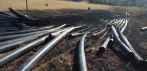 Según los primeros indicios de la investigación, el material quemado, consistente en caños de PVC, estaba acopiado en el predio de una cancha para la concreción de obras de mejoramiento del caudal de agua para la barriada.