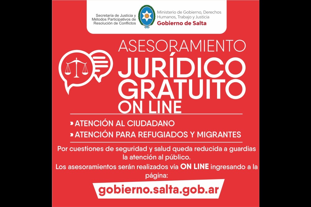 La Secretaria de Justicia y Métodos Participativos de Resolución de Conflictos, trabaja desde hoy con el servicio. Para acceder, los interesados deben ingresar a gobierno.salta.gob.ar.