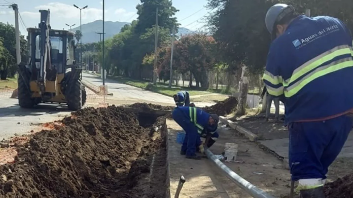 Operarios de Aguas del Norte trabajaron este fin de semana en la renovación de parte de la red de agua potable en barrio Universitario, en la zona norte de la ciudad, puntualmente sobre calle Jaime Durán al 700.
