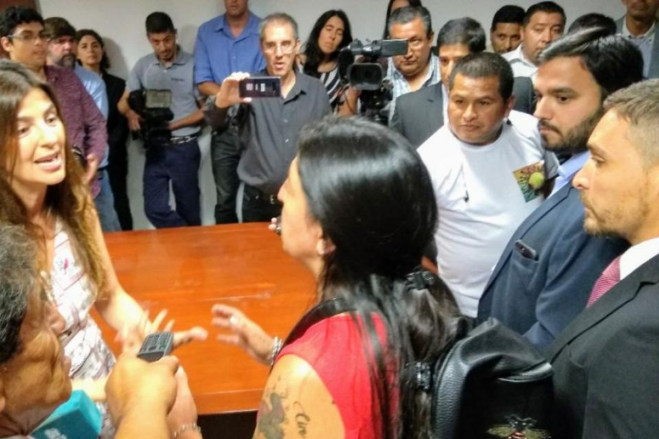 Desconcertada, Romero pidió tranquilidad a la mujer que le gritaba. Pero segundos más tarde comenzó también ella a levantar la voz, en parte por el ruido que provenía de los manifestantes ubicados afuera del recinto, en parte por su enojo evidente.